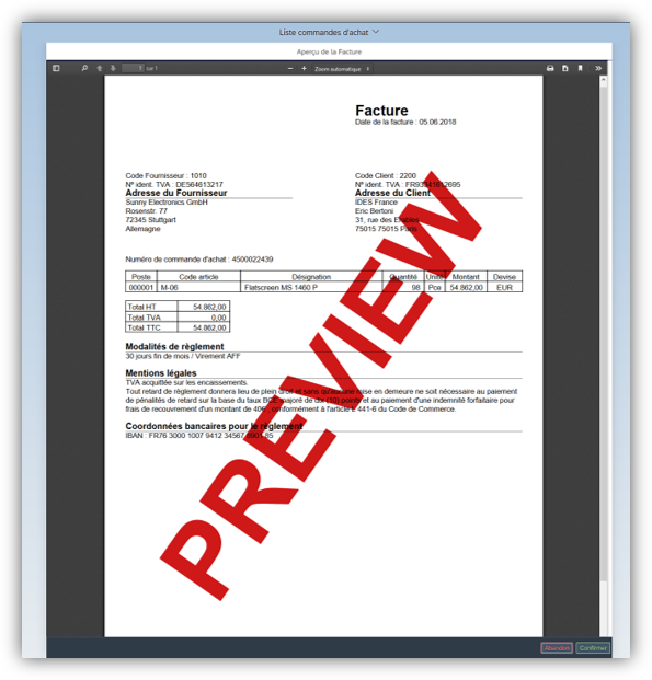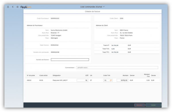 - Validation : uniquement les factures qui contiennent les données minimales requises passeront le processus de validation et seront intégrées dans SAP ERP